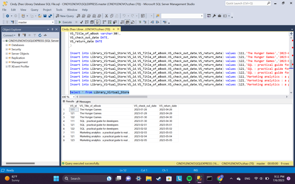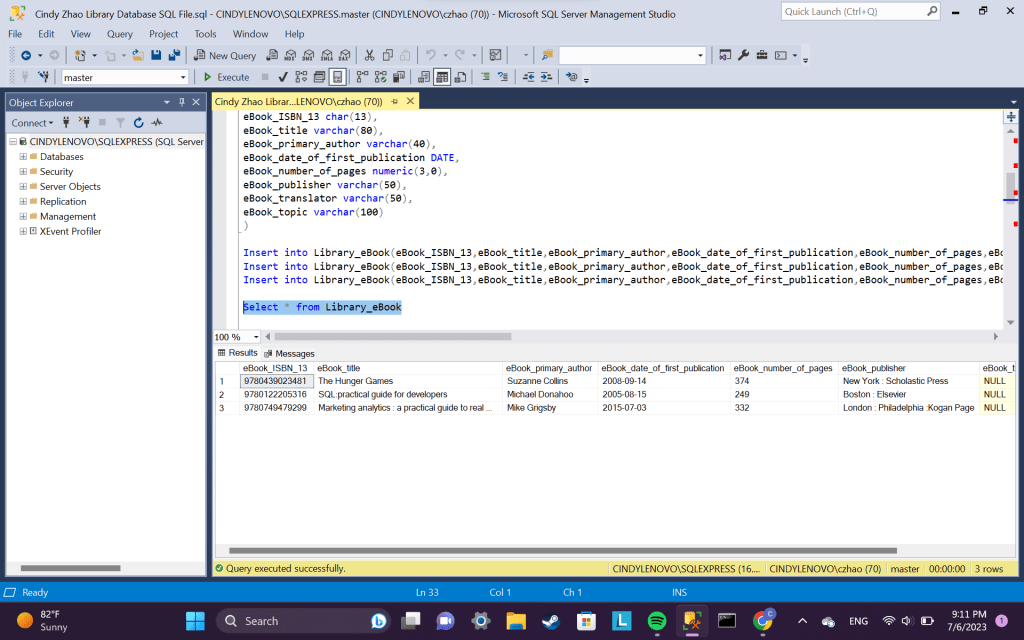Creating a Library Database with 4 tables: user, eBook, virtual store, comments.